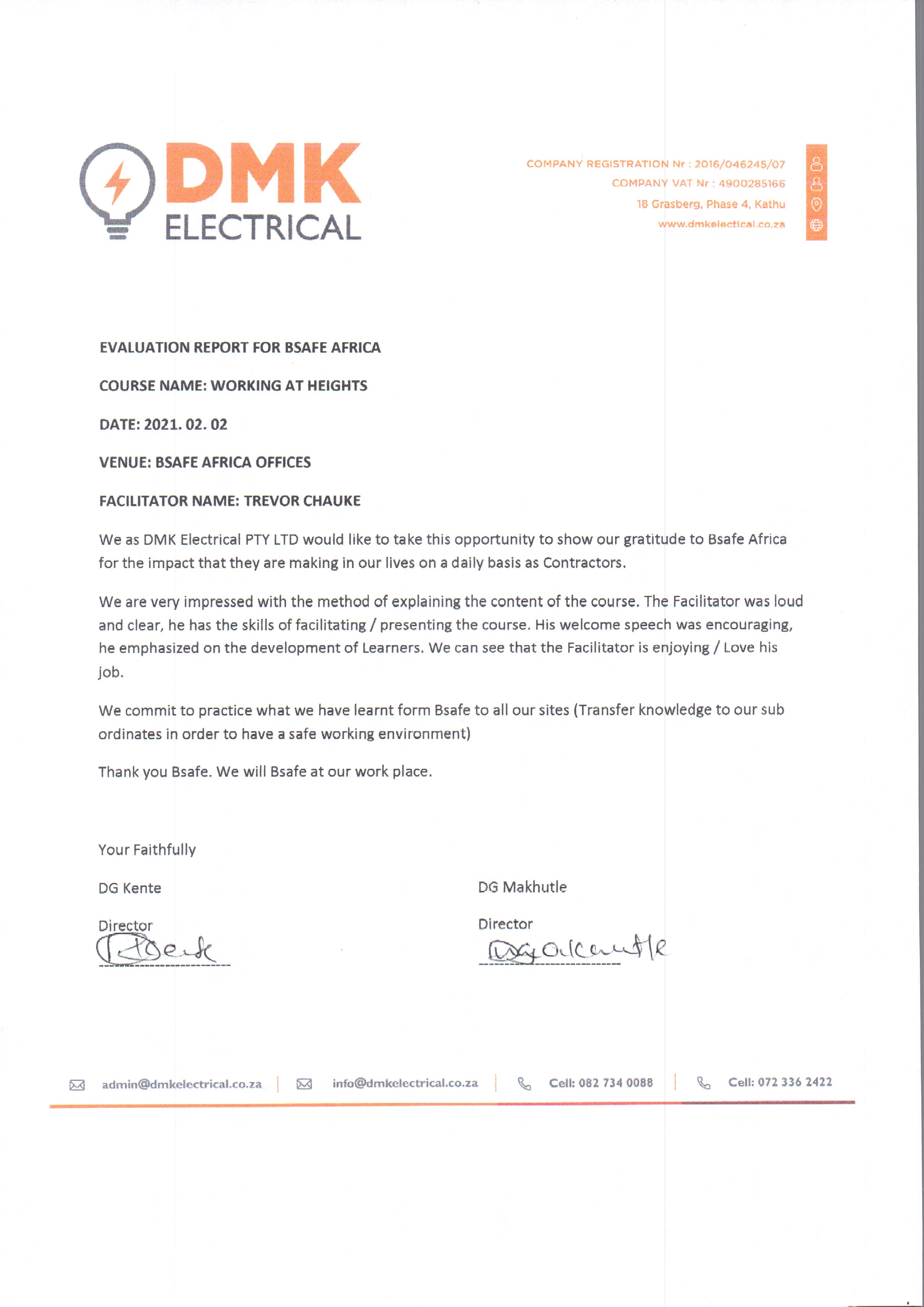 Evaluation Report - DMK Electrical